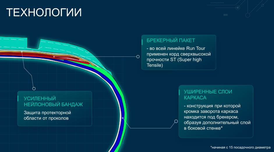 - Нейлоновый корд из сверхпрочных волокон. Повышает курсовую устойчивость. Снижает риск проколов и порезов.